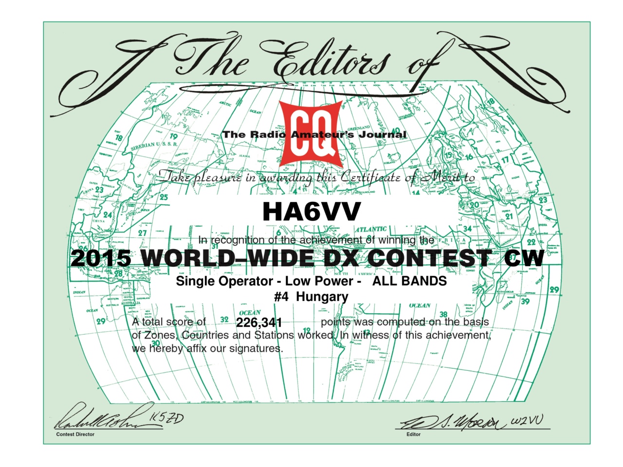 | CQ-WW-DX-CW | 2015.11.28-29. | HA6VV | 4. hely | ![]() |