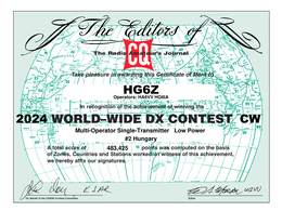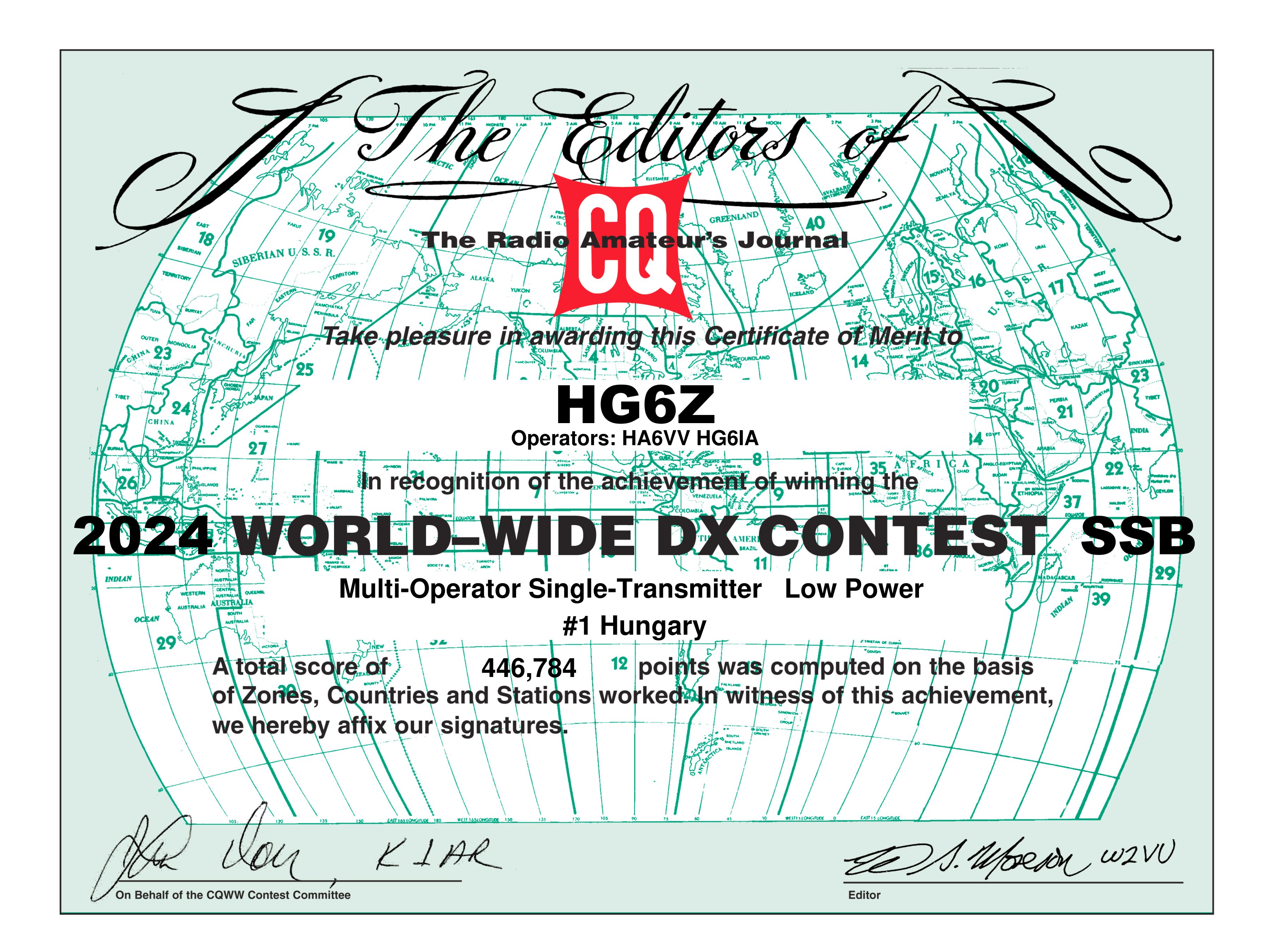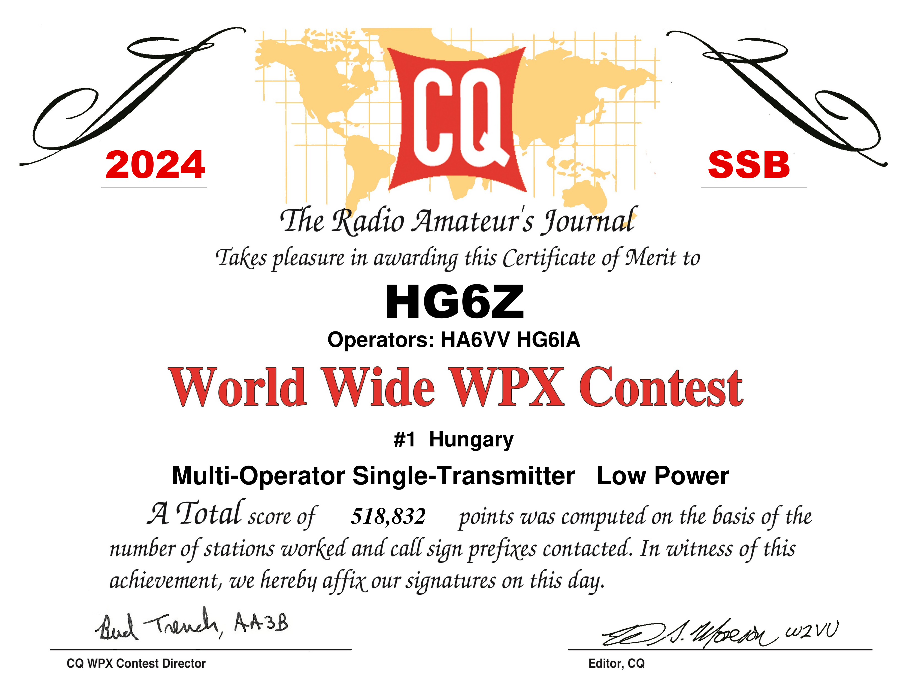 | CQ-WW-SSB | 2024.10.23-24. | HG6Z | 1. hely | 33. hely | |