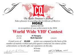 | CQ WW VHF | 2024.07.20-21. | HG6Z | 1. hely | 3. hely | |