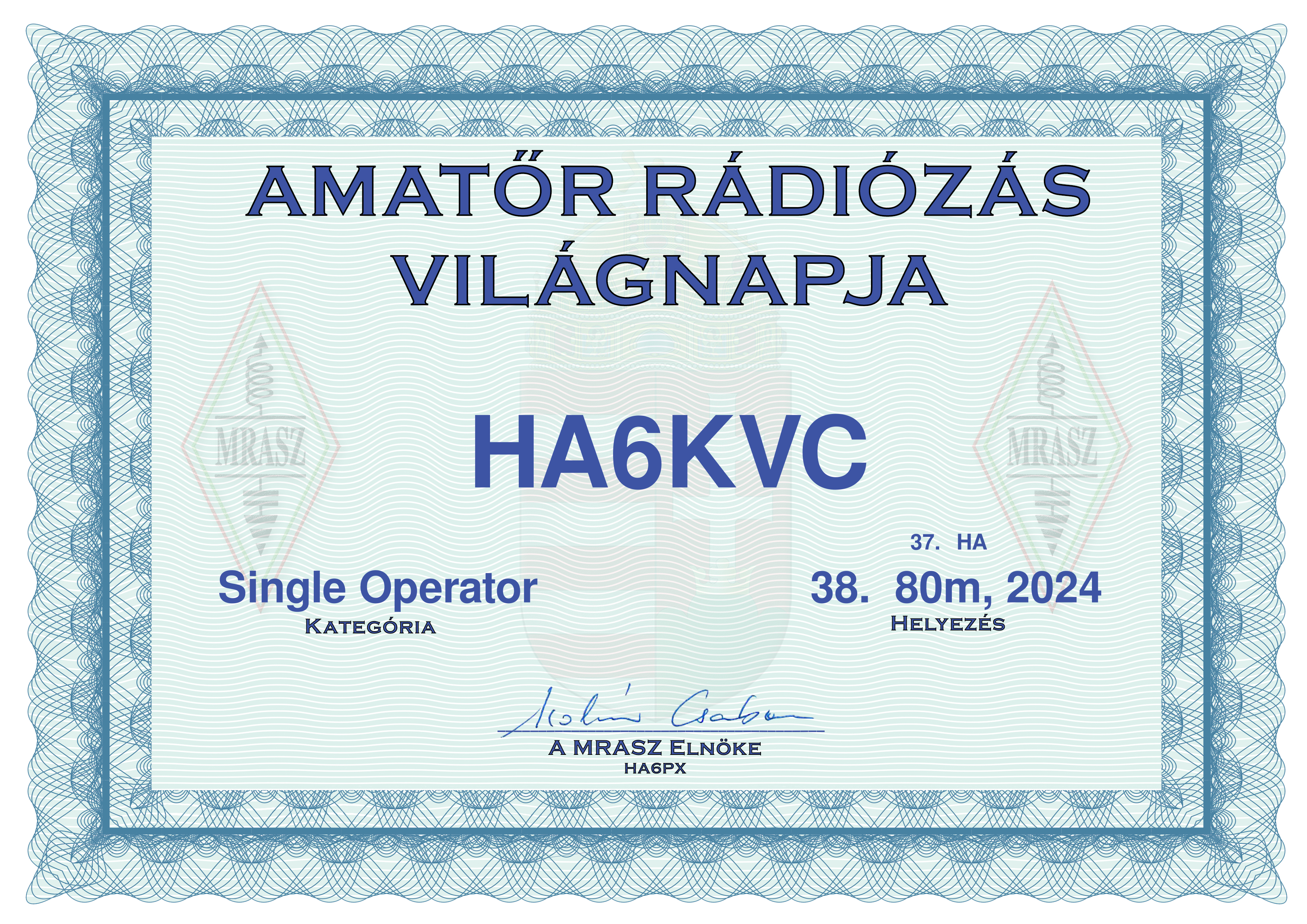 | Amatőr rádiózás világnapja | 2024.04.18. | HA6KVC | 2. hely | |