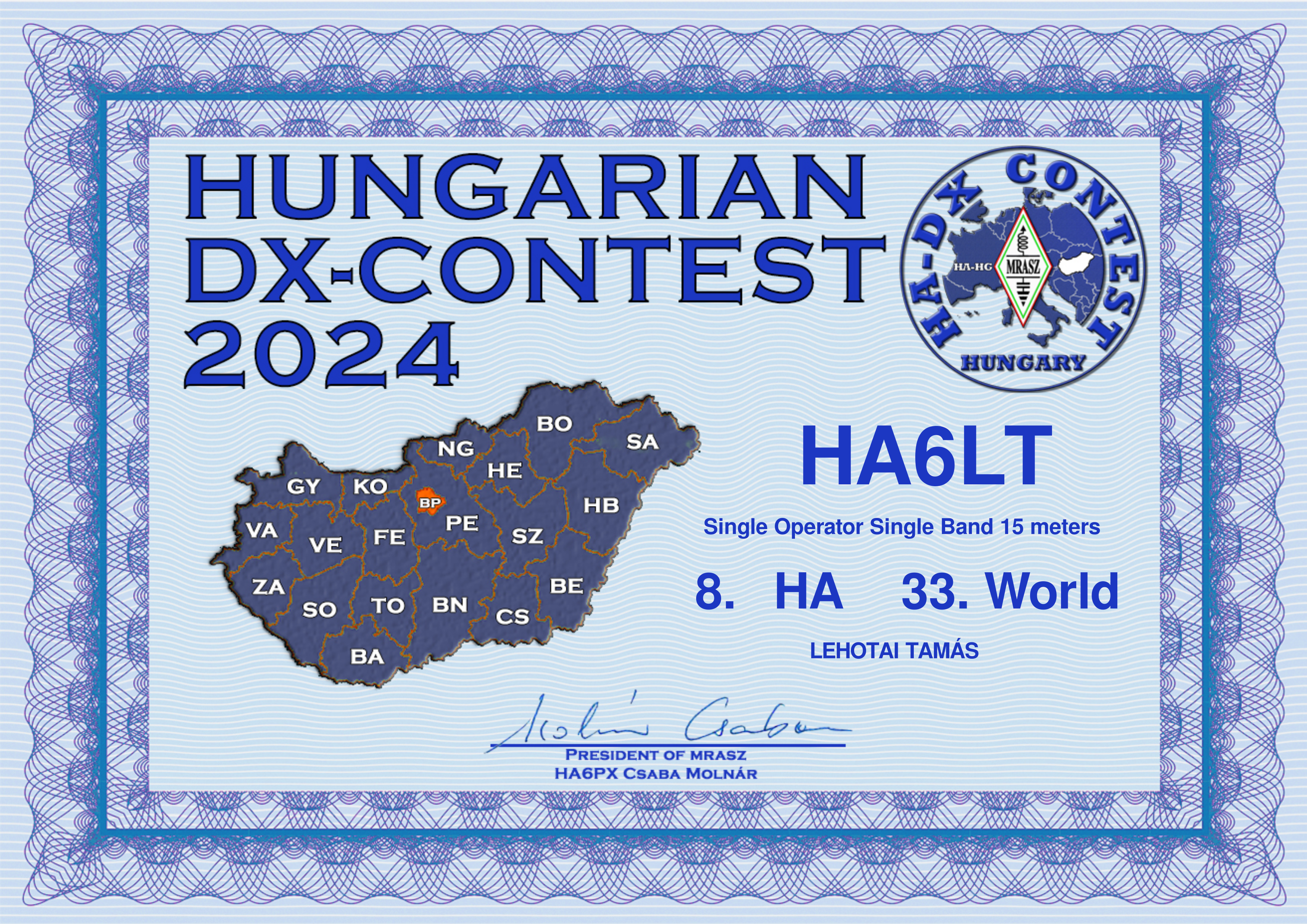 | HA-DX | 2024.01.20-21. | HA6LT | 8. hely | |