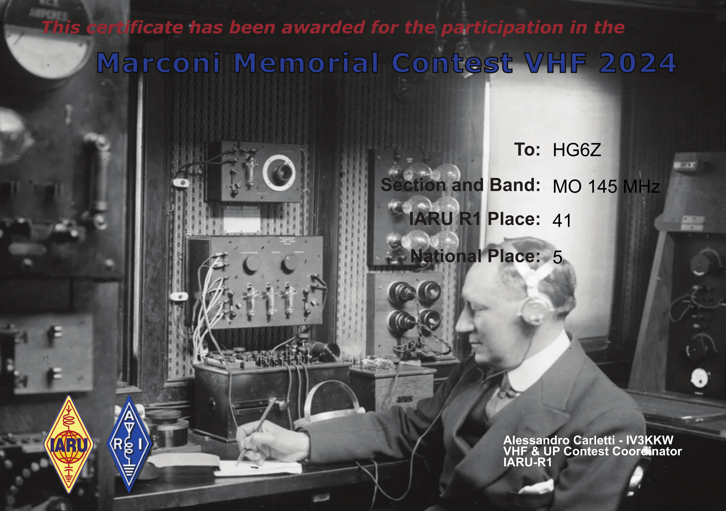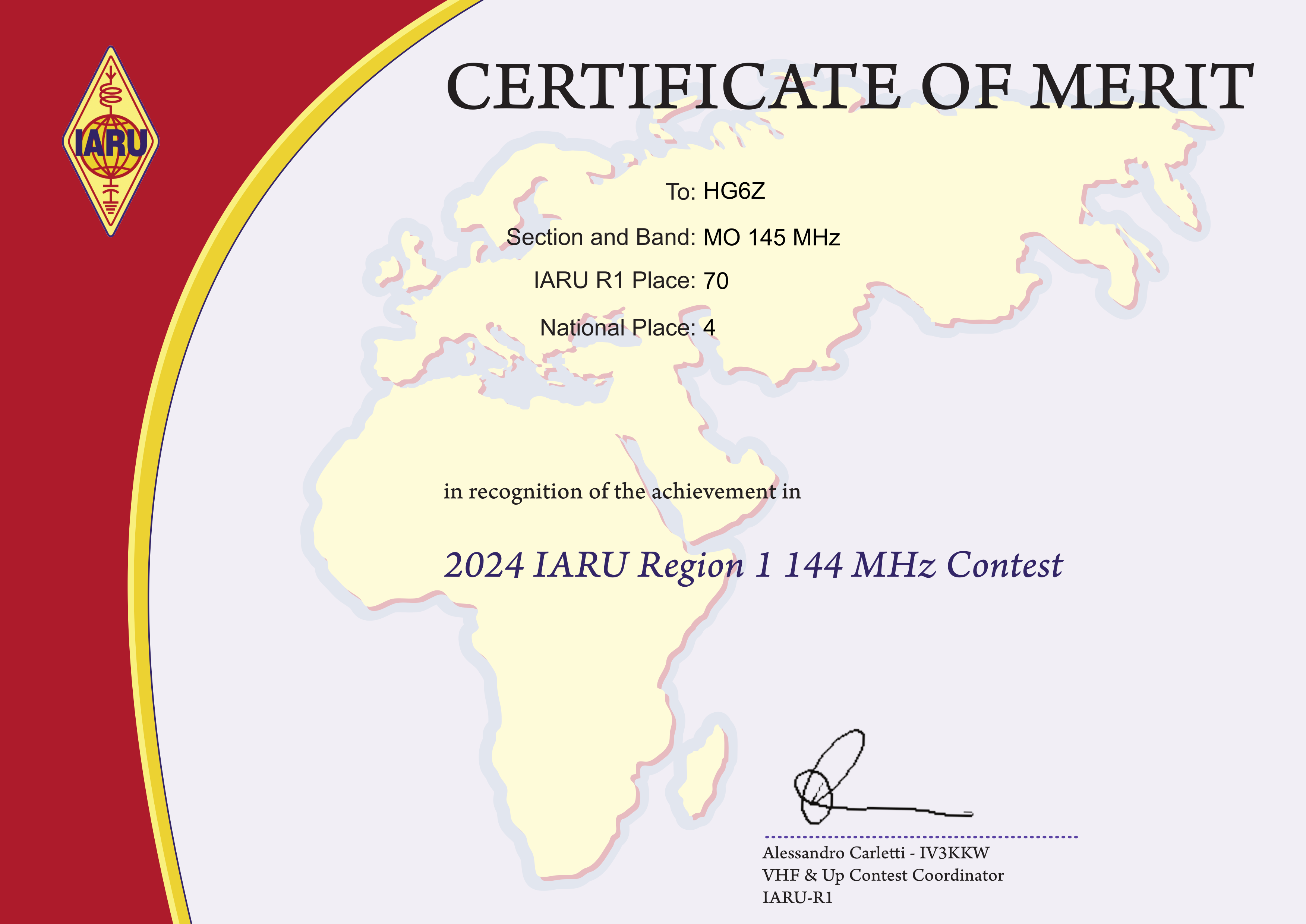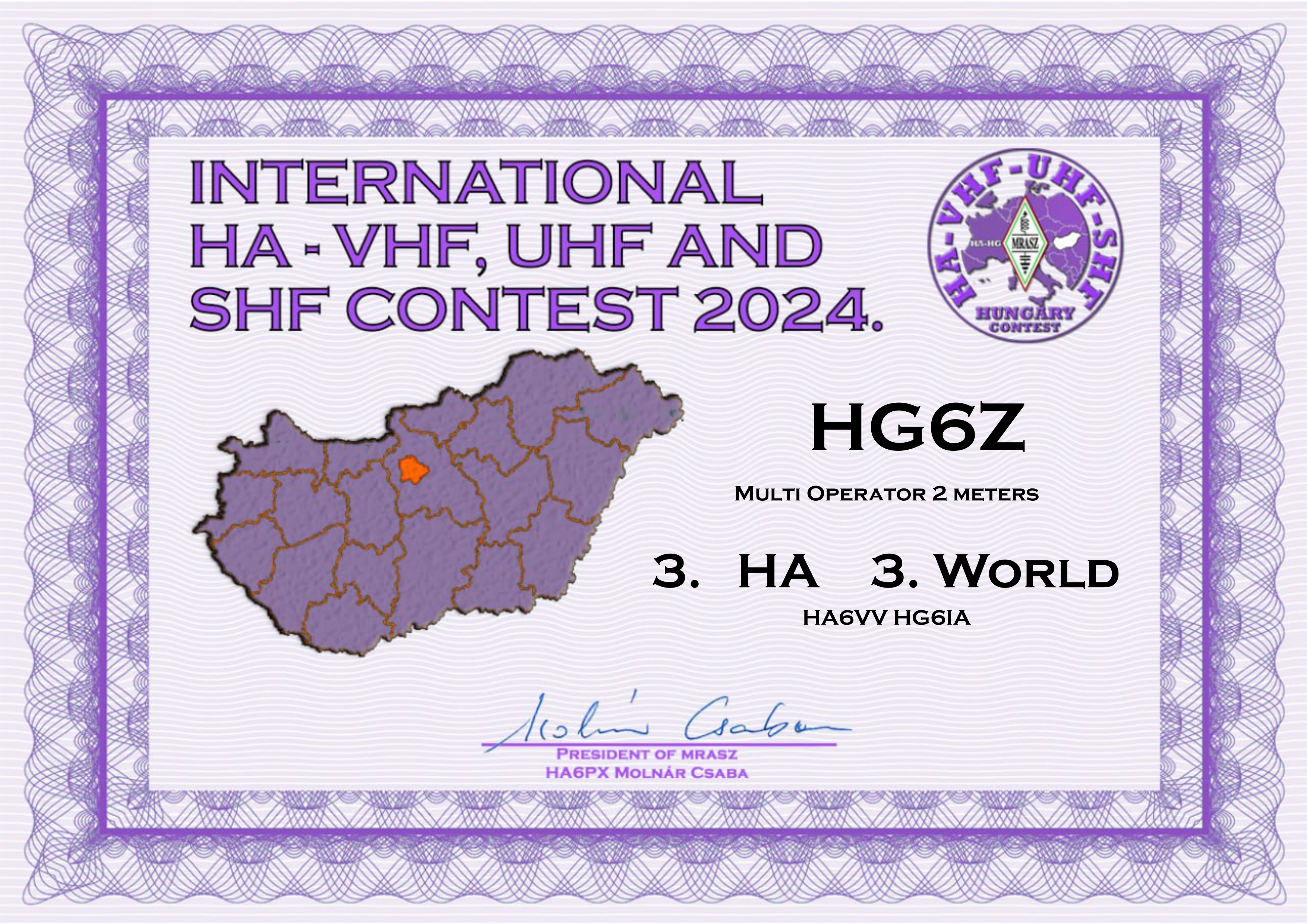 | IARU Region 1. VHF | 2024.09.07-08. | HG6Z | 4. hely | 70. hely | |