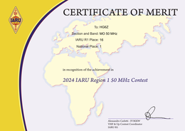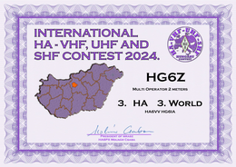 | IARU Region 1. 50 MHz | 2024.06.15-16. | HG6Z | 1. hely | 16. hely | |