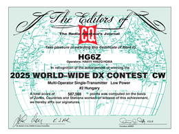 | CQ-WW-DX-RTTY | 2025.09.27-28. | HG6Z | 1. hely | 16. hely | |